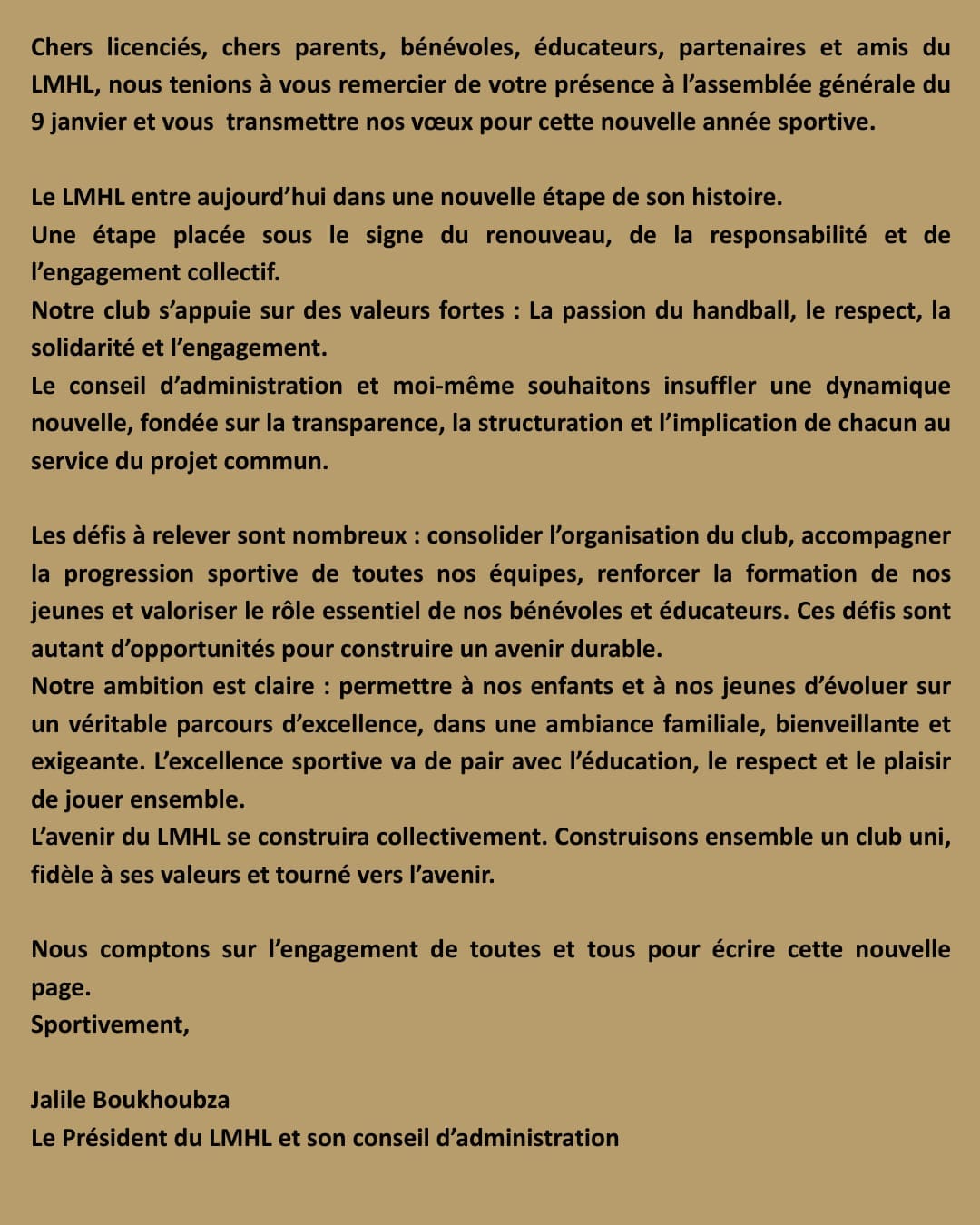 Le mot du Prédisent et du conseil d'administration.