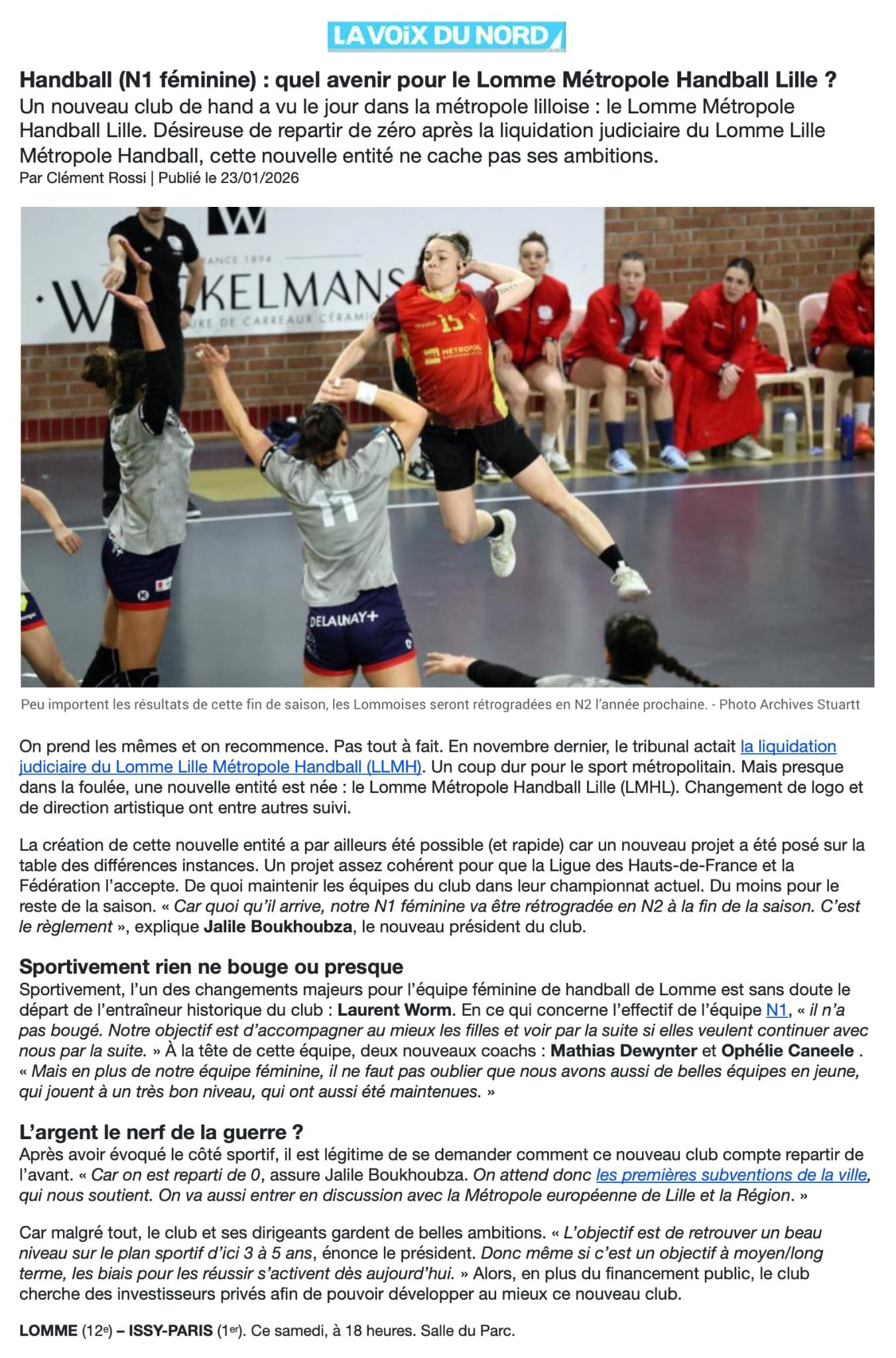 23-01-2026 - Article La Voix Du Nord